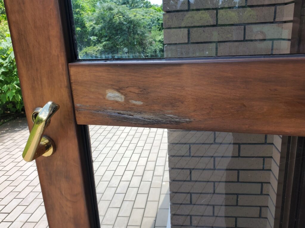 • 【補修②】 フレンチドア木部劣化:パテ+塗装