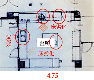 • 【塗装】 フローリング劣化箇所着色補修 床面積の15% (4.75×3.6×0.15=2.5㎡)