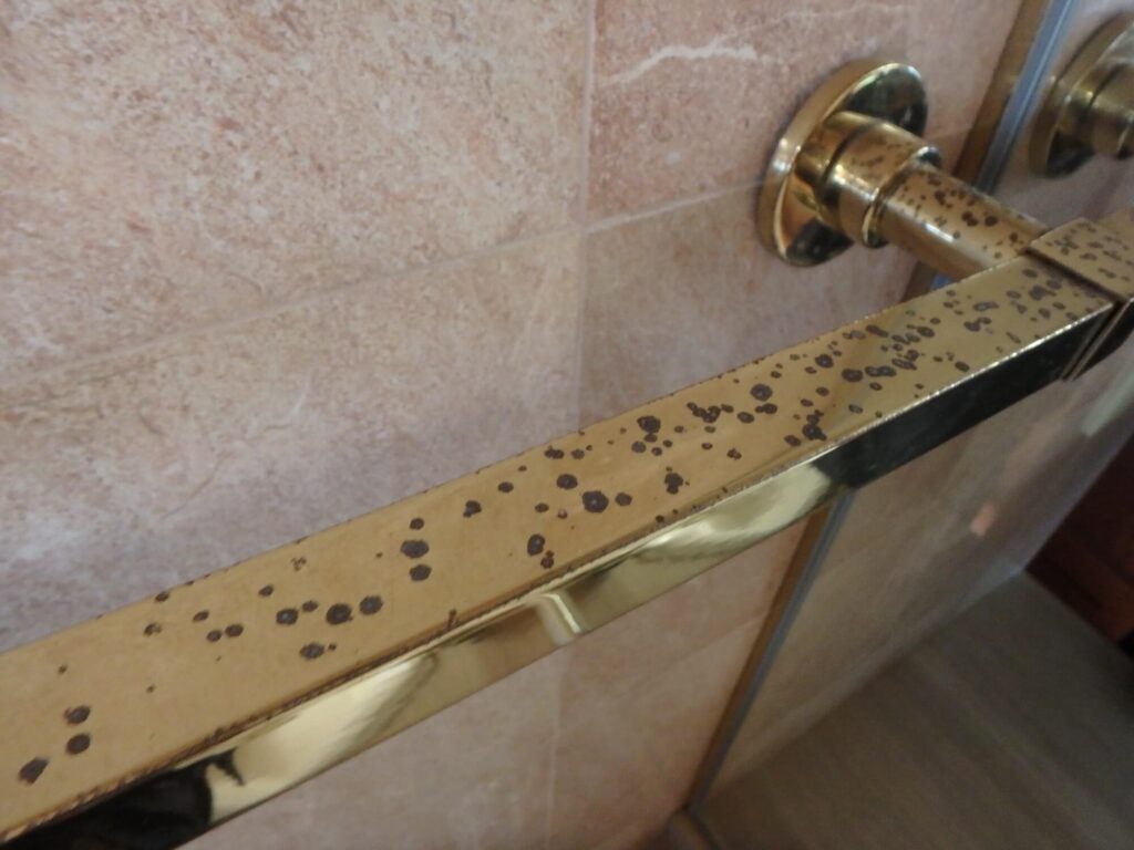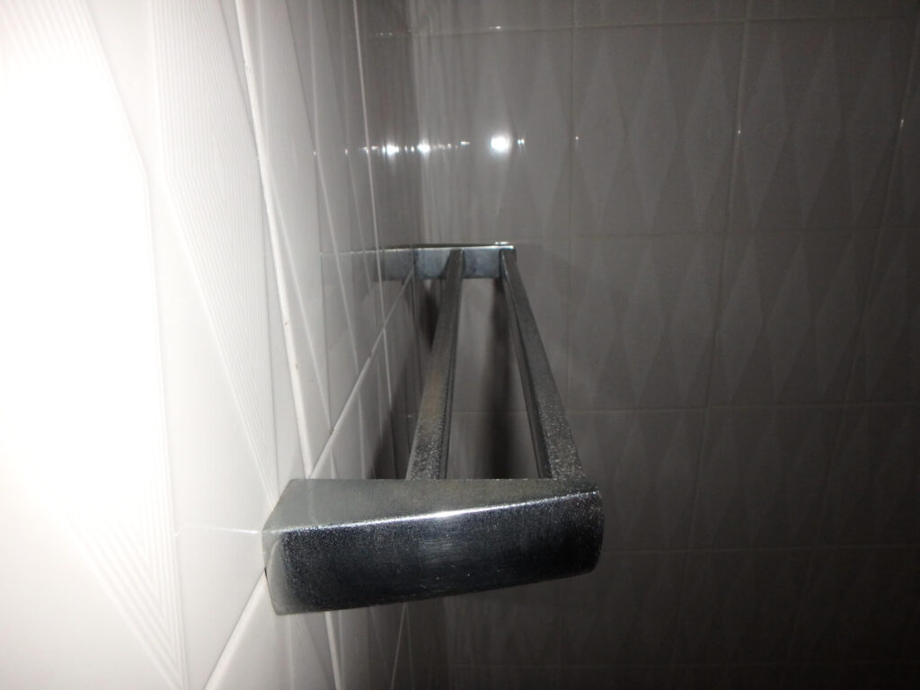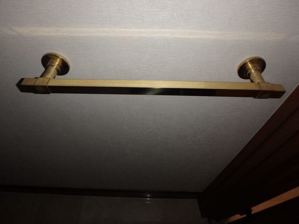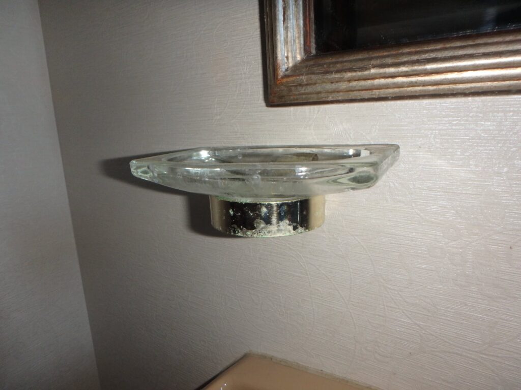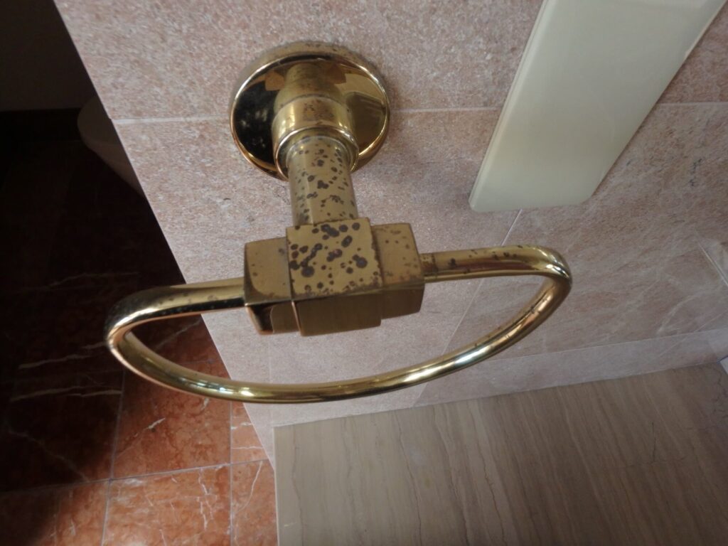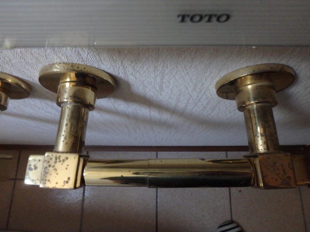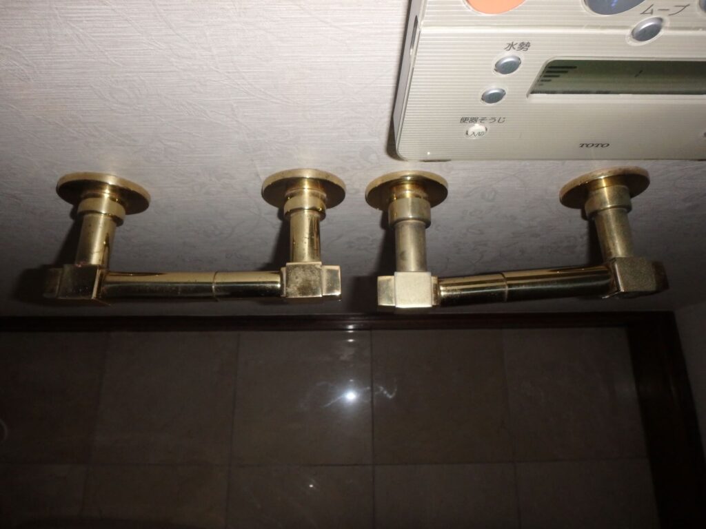 既存のペーパーホルダー・タオル掛けなど錆や腐食が有るため全て交換。新規はクロムで統一。
